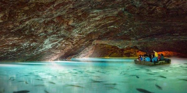 Your Lost Sea adventure begins with a guided tour of the caverns. This involves a ¾ mile round-trip walk on wide sloping pathways. While touring the caverns and underground lake our guides will tell of the cavern’s exciting and colorful history. They will also explain the fascinating geological development of the immense cavern rooms and rare formations. At the bottom of the cave you will take a boat ride on The Lost Sea, America’s Largest Underground Lake.